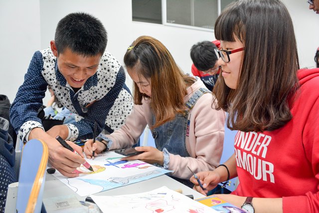 活动伊始,陈兆辉老师介绍了本次活动所需画作的要求,倡导同学们认真思考,积极动脑,紧密结合中国共青团成立95周年以来在作品中充分地展现当代青年学生的朝气与活力。随后学生们积极行动起来,伴随着大家激烈的讨论声音,各种构思浮现在学生们脑中,先描线,再上色,很快一幅幅栩栩如生的画作呈现在大家眼前,有鲁迅的肖像,有团的标徽,有长城、有国旗,最令人印象深刻的还属习近平主席推行的“那年那兔那些事”。活动最后,各参赛选手上台与其作品合影。