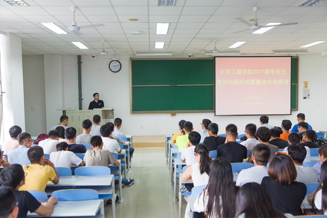 6月19日下午,化学工程学院毕业生党员出征仪式暨廉洁从业教育讲座在南教209举行,仪式由学院毕业班辅导员郭孟主持,纪委办公室副主任、监察处副处长梁秀萍和学院党委副书记王迅应邀出席。