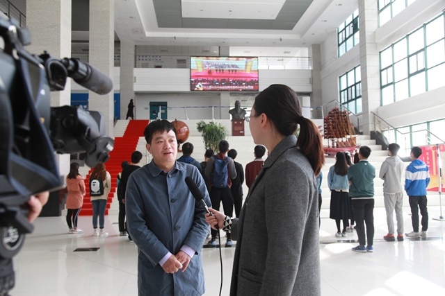 学院教授蒋文春接受青岛电视台采访 杨安摄影