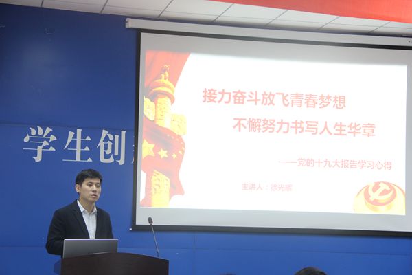 10月28日,化学工程学院于大学生活动中心二楼学术报告厅开展了“接力奋斗放飞青春梦想,不懈努力书写人生华章”——党的十九大报告学习心得主题讲座。本次讲座由化工学院团委书记徐光辉主讲,化工学院全体班长、团支书参与此次讲座。