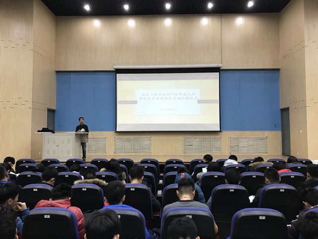 12月12日,化学工程学院在南教100号报告厅召开2017级年级大会,同时启动“树优良学风、扬化蕴新貌”2017年优良学风建设月活动。大会由辅导员郭孟主持,2017级过程装备与控制工程专业、应用化学专业、环保设备工程专业335名学生参加了大会。