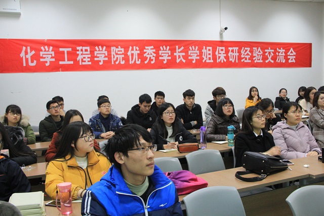 为帮助学院2015级学生了解保研的准备过程及注意事项,3月9日、10日,化学工程学院2015级应控学联分别举办了应用化学专业及过程装备与控制工程专业“保研经验交流会”。会议邀请了学院2014级优秀保研学生史天、江治宇、陈林杰、梁保强、王鑫鑫、黄松、李胜、高大统、魏琦担任嘉宾,就保研流程、定位院校、导师选择等多个方面分享他们的保研经验,为到场的同学们答疑解惑。2015级辅导员薛慧与2015级近100名学生参会。