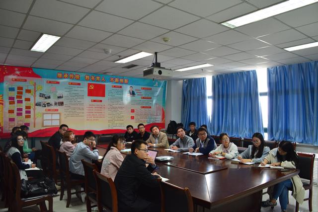 会议开始,郭孟对学院领导班子成员四联系工作进行了介绍,“四联系”即领导班子联系一个学院所属的单位,联系一个学生党支部,联系一个学生班级以及联系一个学生课堂,通过领导班子成员联系党支部,更好的深入宣传习近平新时代中国特色社会主义思想和党的方针政策,指导学生党支部落实党内基本的组织生活制度,开展好三会一课,民主评定党员和发展党员工作,不断提高组织生活质量。随后,支部书记孙坤介绍了此次活动的党员出席情况和流程,带领大家共同学习了习近平总书记在北大师生座谈会上发表的讲话,重点讲解了习近平总书记对青年学子提出的四个希望。她结合自己的学习体会,同时联系生活、学习中的实例,深入浅出、声情并茂的谈了自己学习感悟。她以马克思的青年时代和习近平的青年时代为例深入介绍了“知行合一,做实干家”的含义,激励大家要进一步坚定理想信念,提高党性觉悟;进一步提高专业技能,培养创新意识;进一步强化党员的责任意识,勇立时代潮头;进一步增强对祖国的归属感,放飞青春梦想。之后与会党员也围绕着学习党的十九大精神、习近平新时代中国特色社会主义思想、习近平总书记在北大师生座谈会上的讲话等,以“奋斗的青春最美丽”、“如何更好的阅读”、“如何在新媒体平台主动正确发声”、“如何用科技创新服务社会”等发表了自己的看法。