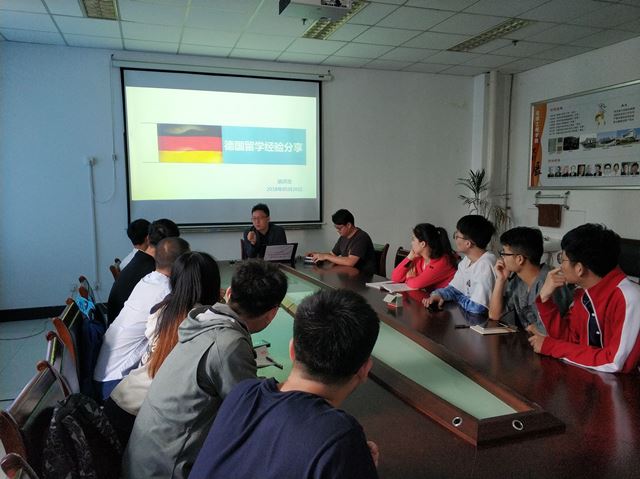 随后,已被德国亚琛工业大学录取的胡洪浩学长就德语学习、ASP面试、语言考试和学校申请四个方面进行了经验分享,他不仅通过举例生动形象地向同学们说明学习德语的技巧和方法,而且通过自己拍摄的视频向同学们分享了ASP面试的情景。最后,同学们就自身关注的问题进行提问,两位学长结合自身经历进行了答疑交流,现场气氛活跃。