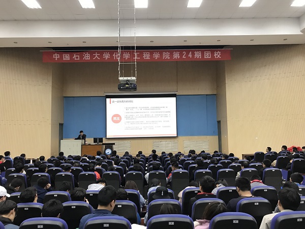 为引导广大团员青年深入学习贯彻习近平新时代中国特色社会主义思想,进一步坚定理想信念,不忘跟党初心,牢记青春使命,3月31日,化学工程学院团委在南教100报告厅举行新一期团校课程,学校团委书记张展应邀为我院团员青年讲授“做一名合格的共青团员”团课。学院团委相关老师及五百余名青年团员参加了此次团课。