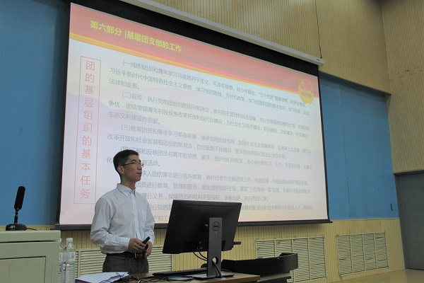 5月11日,由化学工程学院团委书记郭孟主讲,主题为“基础团务”的专题团课在南教100报告厅开讲,现场近400名团员听取课程。