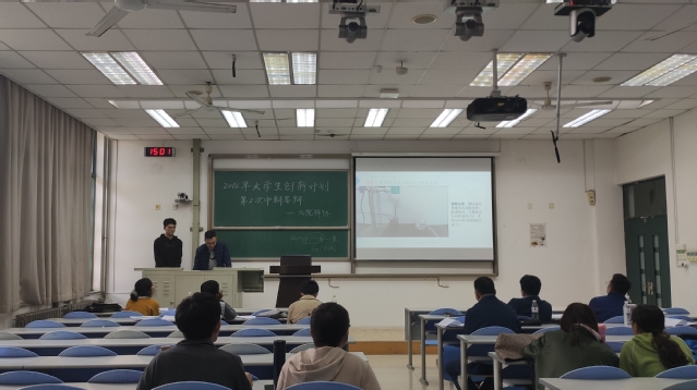 首先,各答辩队伍依次上台展示,从前期成果、项目进度、存在问题和下一步工作安排四个方面进行汇报。期间,评委在每支队伍汇报结束后对该项目进行点评,他们针对不同的项目提出不同的问题,如“实验原理指什么”、“实验成果的性能研究结果是什么”、“实验进度安排如何”等,并对项目出现的问题提出可行性的建议和意见。“这次中期答辩让我们自己意识到了还存在的不足,老师给出的建议也使我们深受启发”,答辩结束后赵思名谈到。