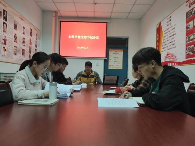 11月22日,学院于工科楼A座党建活动室召开本科生党支部书记例会,会议由学生党总支副书记刘伟主持,全体本科生党支部书记参加。