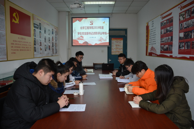 12月26日,化学工程学院在A119和A219会议室分别召开2019年度学生党支部书记述职评议会,全体学生党支部书记进行述职,辅导员参加会议并点评。
