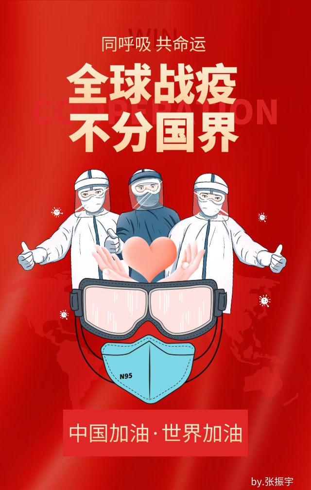 能化1802班杜洪龙在制作的海报中这样描述:“当疫情刚发生时,有很多人都巴不得逃离疫区,而这时却出现了最勇敢的逆行者,他们就是医务人员。在病魔面前,他们积极地担当起自己的责任,争分夺秒,与死神勇夺一个个美丽的生命。他们给了病者希望,他们为战胜疫情带来了光明。患难见真情,我们都被医务人员所感动,我们向他们致敬。”化工1802班耿彤婧在征文中写道:“每个有知识有信仰的热血中国人,都不会被疫情打倒,我们还要一同守护着、陪伴着祖国母亲走过2020年!”许许多多的抗疫作品将学生们的信念和信心汇聚成为患者、医护人员、防疫一线的逆行者感谢的话语,为武汉加油、为中国加油的声音。
