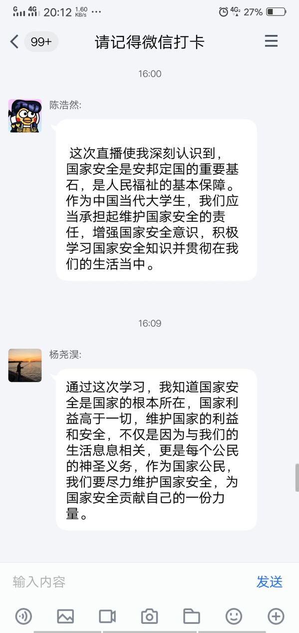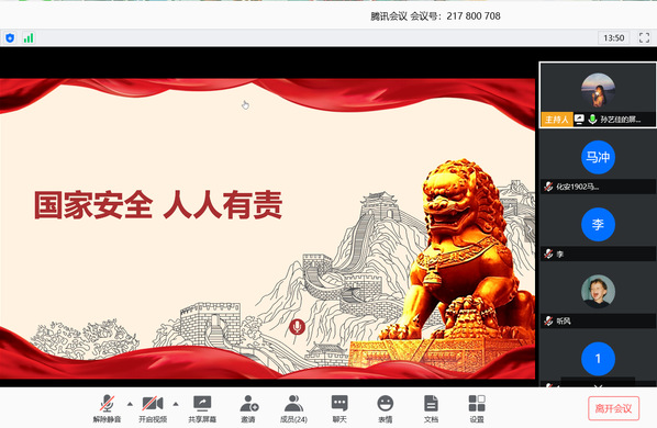 2019级各团支部召开线上主题会议,深入贯彻维护国家安全的思想。化工1901班班长马湘强调:维护国家安全是我们每一个人的责任和义务,同学们要多关注国家安全,树立国家安全意识。会议上,同学们讨论交流参与活动后的感悟,应化1901班团支书刘金金表示在本次的安全教育日主题宣传活动中学习到了很多安全知识,了解到了目前对于人类安全的威胁所在,知道了怎么去保障自身安全,也了解到我国对于保障人民安全的措施和政策。