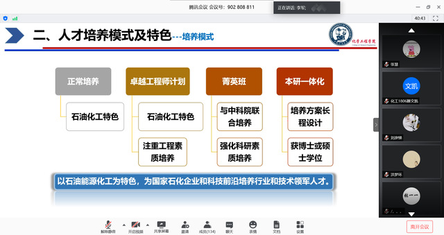 为帮助学生增强对化学工程与工艺专业方向及发展前景的认识,了解专业卓越班、菁英班选拔条件,5月14日上午,2018级邀请化学工程系副教授李军开展教授导学日线上活动。会议由辅导员刘伟主持,辅导员朱景顺、秦政及2018级化工专业学生参加。
