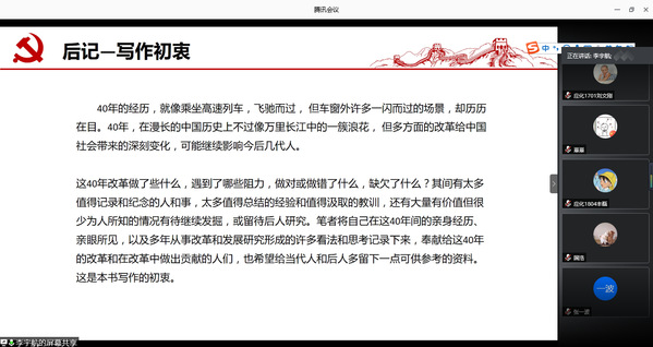 6月28日晚,支部书记吴军委以“从《苦难辉煌》看中国为什么行”为题讲授专题党课,通过系统地分析,讲授了中国共产党人如何在危机中孕育新机、于变局中开新局,同时支部副书记李宇航分享了读书感悟,全面讲授了新中国四十年的改革之路。接着,2017级党小组成员戴良鸿聚焦两会热点问题,系统讲述了“六保六稳”是什么、为什么,使支部党员深入体会党中央决策部署的真实含义,“近几年两会给人民带来的便利,我是切身体会的,运营商的提速降费、携号转网,政府的精简政务,让老百姓只跑一次腿也是逐年在完善,人民的获得感满满”,支部书记吴军委如是说。最后,支部书记吴军委在支部内发起倡议,在七一建党节来临之际,满足线下条件的可前往红色教育基地进行参观学习,不具备条件的,可通过访问线上展馆的形式进行学习;同时要求支部党员线下自行观看红色电影,并在支部内分享自己的体会。