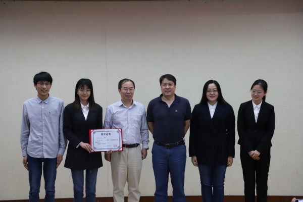 紧接着,张炜代表学校接受企业奖学金捐赠,并为袁华东颁发捐赠证书。王迅宣读奖学金表彰文件,校企双方领导为获奖学生及团队颁发荣誉证书。
