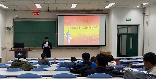 11月10日晚,“讲好抗疫故事,弘扬中国精神”演讲比赛2020级年级初赛在西环102举办。辅导员魏孟吉、栾琳担任本次年级初赛的评委。