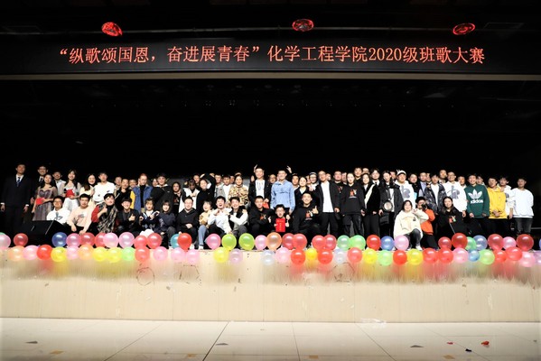 活动伊始,学院艺术团舞蹈队表演开场舞拉开了比赛的序幕。接着12个班级按照抽签顺序表依次上台演唱,通过手语、舞蹈、节奏口技等多种丰富的表演形式,为大家带来了生动的视听体验。比赛环节结束后,文学院音乐系学生刘彦宏带来声乐表演《灯塔》,学院艺术团声乐队表演节目《强国一代有我在》。经过一番精彩的表演后,评委从精神风貌,节目质量,创新创意三个角度进行打分。经过激烈角逐,化工2004班获得本次比赛一等奖;环境2001班、化工2006班获得二等奖;化安2001班、化安2002班和能化2001班获得三等奖;化工2003班、化工2005班、化工2002班、环境2002班、应化2001班、应化2002班获得优胜奖;应化2002班获得“网络人气奖”。到场老师为获奖队伍一一颁奖。活动最后,全体参赛、演职人员上台合影留念。本次活动在化学工程学院学生会公众号上同步直播,实时在线观看量最高达一千,获得5000余次点赞。
