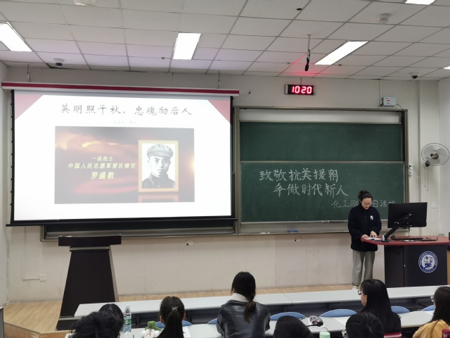 今年是中国人民志愿军抗美援朝出国作战70周年。为进一步弘扬伟大的抗美援朝精神,引领学生崇尚英雄、致敬英雄,增强学生爱国主义情怀,11月17日,化工1802班于东环107教室举办“致敬抗美援朝,争做时代新人”主题团日活动。院长杨朝合受邀出席,辅导员刘伟及化工1802班全体学生参加本次活动。