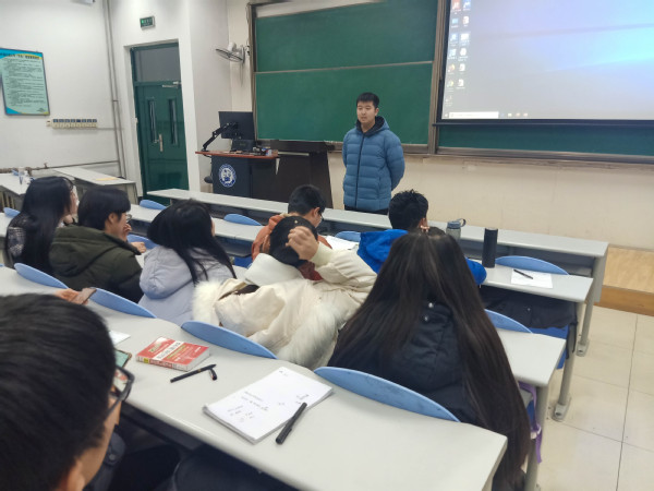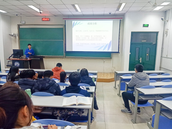 会议伊始,本研班三名成绩靠后且存在欠学分情况的学生进行自我汇报。三名学生从上学年成绩总结、期中考试总结、四级成绩分析、自我状态、将来打算五部分进行了自我分析。随后,辅导员王兆兴分析本研班当下学习状态,并提出希望:“本研班作为学校、学院重点培养的对象,同学们应该珍惜资源优势,把握机会,以学风为主线综合全面发展。”接下来,学习委员鲁家荣汇报班级大自习出勤率及早读出勤率,通报迟到缺勤的同学,并详细介绍了班级接下来物理化学和有机化学模拟考试安排。鲁家荣指出;“我们马上就要迎来四级考试及期末考试,要端正学习态度,不可松懈,要拿下优良学风班的称号,为班级争光,体现本研班优势所在。”最后,班长余治甫对班级管理情况进行总结和反思,并通过问卷调查形式收集班级学生的意见或建议,与全班学生进行探讨。