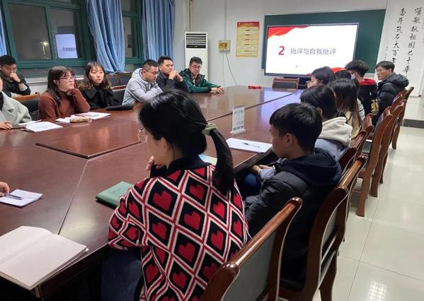会议上,党支部书记卢明星首先指出了支部目前存在的问题并提出了解决方案。卢明星强调:“目前党员的监督管理方面不够完善,党员的带头作用发挥得不明显”,针对这一点支部将会进一步健全党员大会制度和组织生活会制度,引导党员在会议上敞开思想,帮助党员同志们进步。随后,支部的党员同志们展开了批评与自我批评,深刻剖析了在最近阶段自身存在的问题。