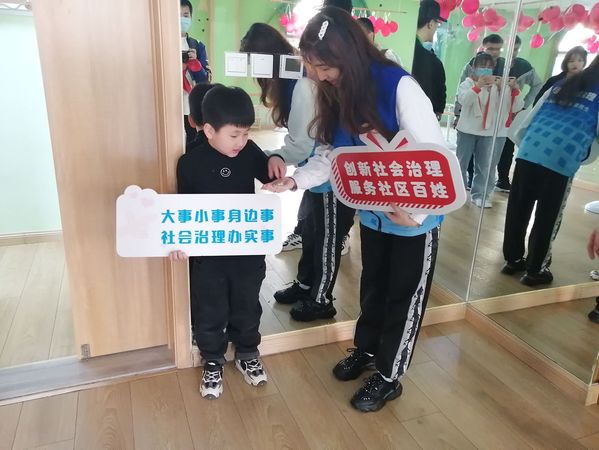 志愿者向小朋友宣传雷锋精神 孙炜鹏摄影