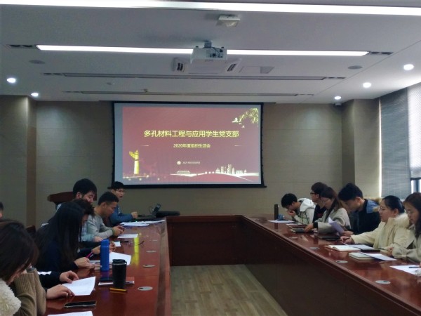 为深入学习贯彻习近平新时代中国特色社会主义思想,促进党员树牢“四个意识”、坚定“四个自信”、坚决做到“两个维护”,进一步推动支部建设,加强党员理想信念教育,提升党员政治素质、理论水平和党性修养,3月8日下午,多孔材料工程与应用学生党支部于逸夫楼一楼会议室召开专题组织生活会并进行民主评议党员工作。