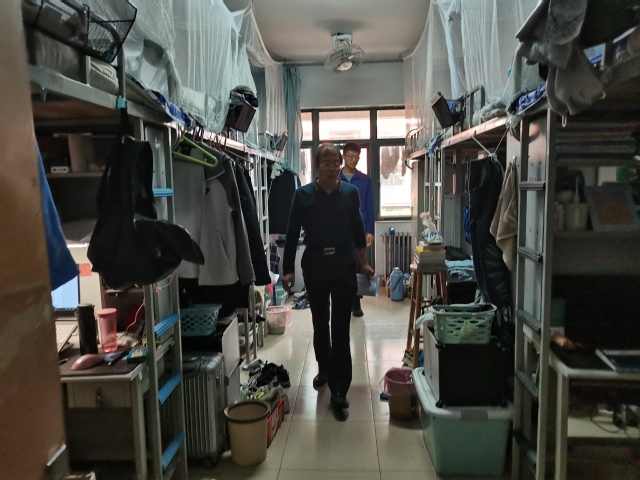 本次检查内容主要涉及宿舍安全及卫生情况,重点对宿舍的地面卫生、床铺整洁、宿舍线路、阳台卫生和室内空气等情况进行检查。本次检查发现宿舍卫生状况良好,整体符合标准,但个别宿舍存在桌面东西多、地面杂物堆积过多等问题。年级工作组及时做出评分,并在当天对相关学生进行批评教育,要求立即整改。检查过程中,辅导员还询问学生英语四六级考试准备情况,同时告诫同学要诚信考试。