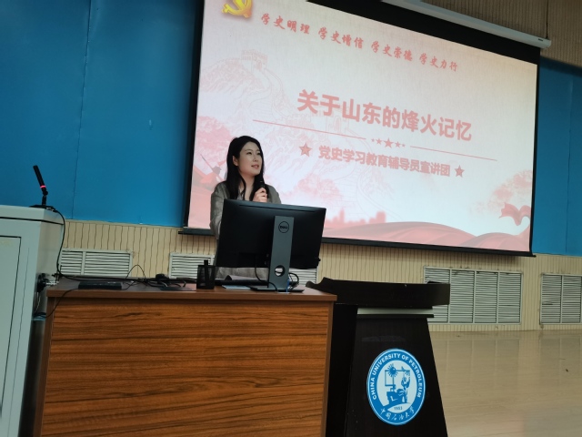 会议伊始,刘伟介绍了本次活动的背景、目的和意义。单珣从沈括的《梦溪笔谈》讲起,介绍了我国石油行业的发展历史。以延长石油为着眼点,以时间为脉络,以典型人物事迹为线索,讲述了中国从被带上“无石油”的帽子,到现如今石油行业蓬勃发展位居世界前列的历史过程中,严爽、高登榜、陈振夏等人埋头苦干,为中国各阶段的发展提供石油需求作出了重大贡献。单珣讲道:“延长石油曾为中国革命和经济建设作出过重要贡献,希望同学们能够弄懂并破解其中的‘红色密码’,汲取精神动力,走好新时代我们青年人自己的长征路。”王宁结合自身经历,从齐鲁大地的由来、风土人情、革命历史等方面娓娓道来,讲述了沂蒙六嫂为代表的一个个感人故事,分享了孟良崮战役、济南战役等经典战役,彰显了源远流长的齐鲁文明和革命时期山东及山东人民的担当。王宁谈道:“山东作为一个底蕴深厚、潜力无穷的宝地,一定能够在继承发扬优良传统、不忘初心攻坚克难的道路上走得越来越远。”现场同学们认真听讲,积极互动,气氛热烈。