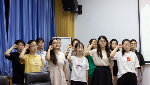 最后,学生公寓第二学生党支部书记朱亚男带领党支部成员重温入党誓词。
