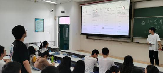 首先,全体同学共同观看奋斗百年党史纪录片,胡一文结合个人党史学习的感悟分享了自己的观后感,同学们深受鼓舞,积极走上讲台,抒发对党的深深热爱。随后,团支部举办了党史问答比赛,在场团员们纷纷举手抢答,现场氛围十分热烈。