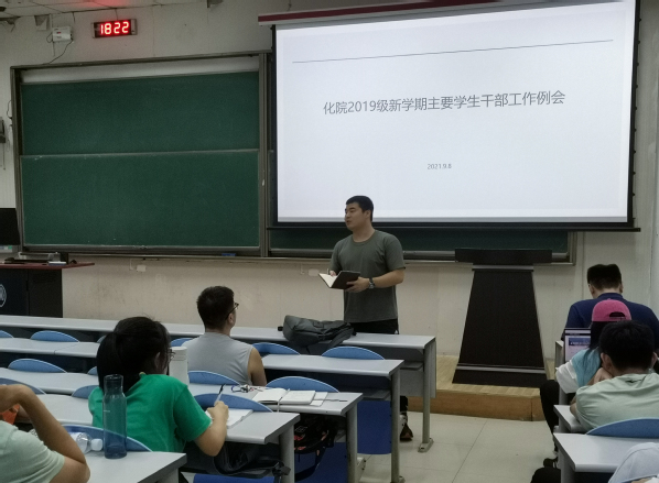 为加强新学期年级学风建设,促进学生日常管理、疫情防控等各项工作的顺利开展,9月8日下午,2019级工作组于讲堂群西环106召开年级新学期主要学生干部工作例会,辅导员王兆兴、耿旭超参加并主持会议,2019级各班班长、团支书、学习委员参加会议。