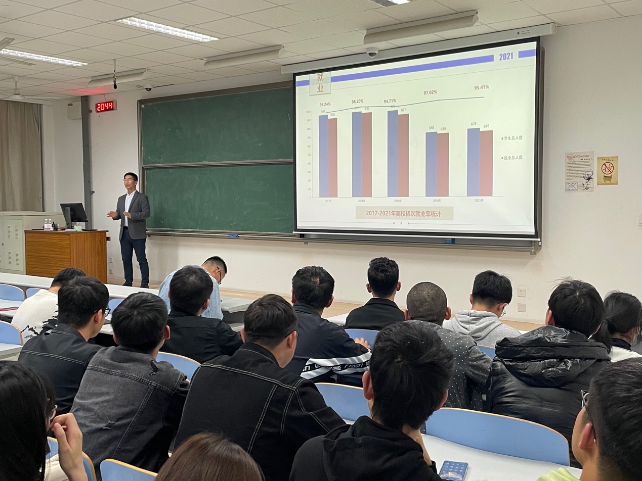 首先,窦老师对在座毕业生的就业情况进行了解,她指出准备一份完美而有力度的简历对于面试成功与否至关重要。紧接着,窦雅琴从简历制作的共性问题、简历修改的重点以及面试的要点进行培训。窦老师还与大家讲解了面试过程中考察的重点内容、注意事项,还就结构化面试、行为面试、无领导小组面试等面试形式进行了重点讲解。在接下来的环节,就同学们在就业过程中遇到的困难,窦雅琴以实例向同学们进行耐心解答。随后,研究生辅导员郭孟向大家简要介绍了往年毕业生就业的基本情况,并针对网签、三方协议的发放以及报到证的派遣政策进行详细解读,并鼓励大家在就业方面继续努力。