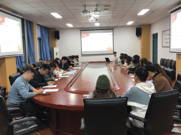 在师德师风专题学习环节,薛慧带领大家学习了习近平总书记勉励全国高校黄大年式教师团队代表的回信,强调教师应将立德树人作为根本任务,坚持以自身的德行与修养为标杆引导学生厚植家国情怀。在理论学习环节,学生会党支部书记国浩通过原文、视频等形式,带领大家学习习近平总书记赴山东考察调研期间重要讲话精神、习近平总书记在中华人民共和国恢复联合国合法席位50周年重要讲话精神,国浩表示,作为一名中国共产党党员,要坚定初心使命,为推动构建人类命运共同体而不懈奋斗。