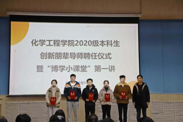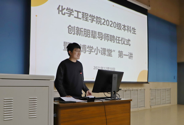 据悉,“创新朋辈导师”源自化学工程学院2006年开始推行的“教授博士下班级”活动,旨在以“博学务实 创新奋进”为引领,以“大学长 身边人”为引导,进一步推进优良学风建设,促进朋辈交流互动,切实提高学生创新意识和创新能力,为本科生的生涯发展打下良好基础,为学院人才培养注入新的动能。