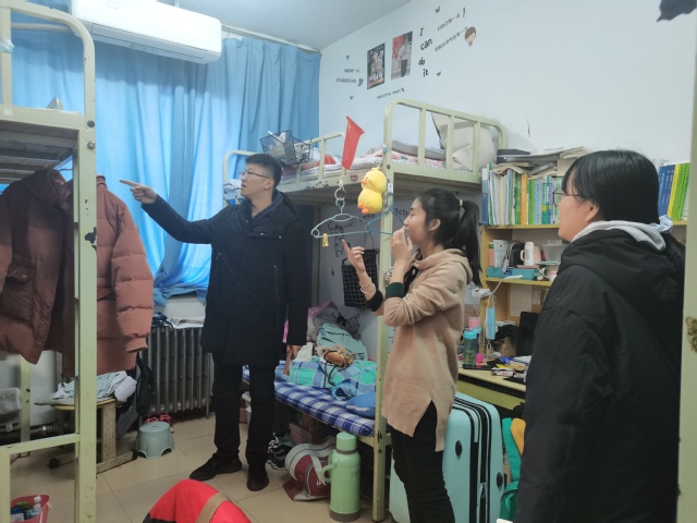班干部见面会于当天下午在工科楼A座215举行,会议由2018级辅导员刘伟主持,化学1801、化学1802班长支书参加会议。会议伊始,刘伟对化学专业的归来表示热烈欢迎,并简单地进行了自我介绍以及年级情况介绍。紧接着,他分别就党团班级建设、安全、学风、升学就业以及特殊群体等几个方面与化学专业的班干部进行交流。同学见面会由刘伟带领年级学生工作组走访寝室的形式开展,走访期间,他向化学专业学生们介绍了学院的浓厚的学习氛围、丰富的科研竞赛机会以及优秀的指导教师等情况,希望同学们能够在新的平台里继续发光发热。交谈过程中,刘伟还对宿舍安全卫生、寒假离返校流程等进行了强调,要求学生们严格落实好学院的相关规定政策,平平安安回家。