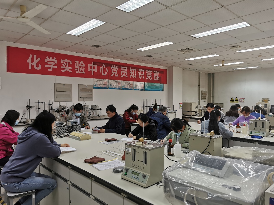 为深入学习宣传贯彻党的二十大精神,切实提升教师党员的理论素养,充分发挥党员的先进性,2022年11月3日上午10时,化学实验中心在基础实验楼举行“学习党的二十大精神”党员知识竞赛,中心全体教师都积极参加。